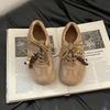 Literarischer Stil Schnürung Perlen flacher Mund Deutsche Trainingsschuhe Damen Herbst und Winter Retro Besatz Leder Toastschuhe Casual Sportschuhe