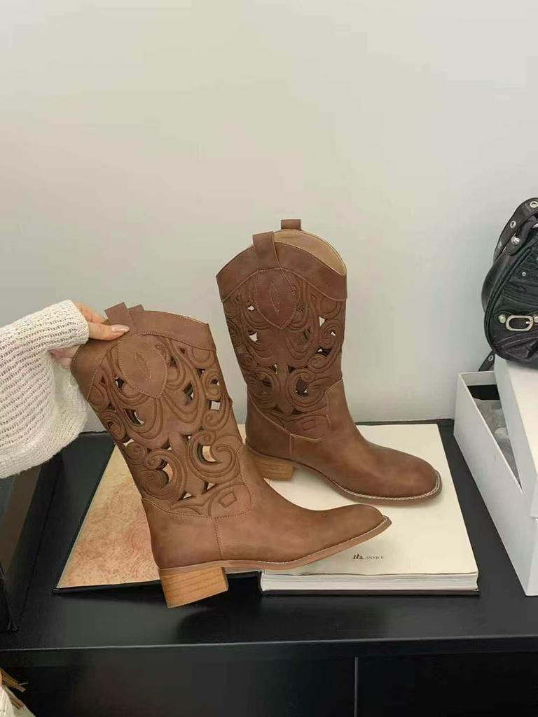 Ausgeschnittene western cowboy stiefel damen neu Xinjiang mongolische grasland kleidung herbst und winter braun wüste kurze stiefel