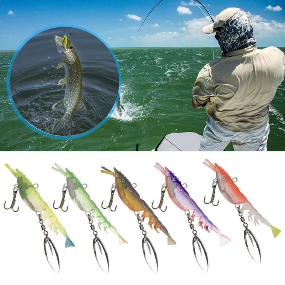 6.7cm Length PVC Shrimp Fishing Lures 4g Weight Pre-rigged Fishing Jigs Walleye Fishing