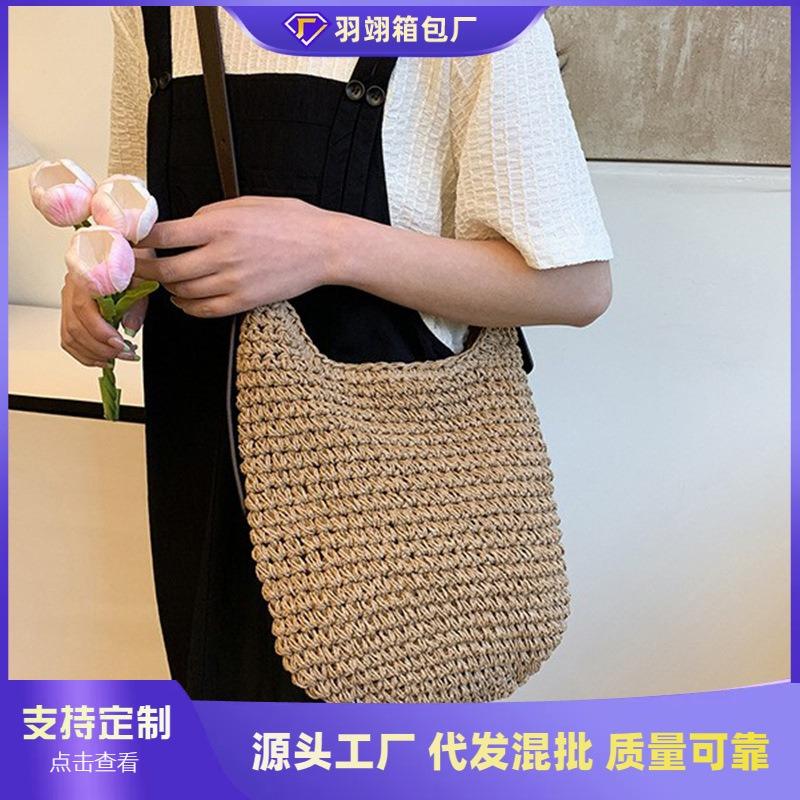 Summer lazy wind straw woven bag new large capacity shoulder messenger bag seaside beach bag commuter woven bag