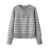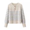 Herbst- und Winterlockere Künstlerische Retro-Gestreifte Strickpullover mit einem Designgefühl von Kuhhorn-Schnalle Pullover Damenpullover