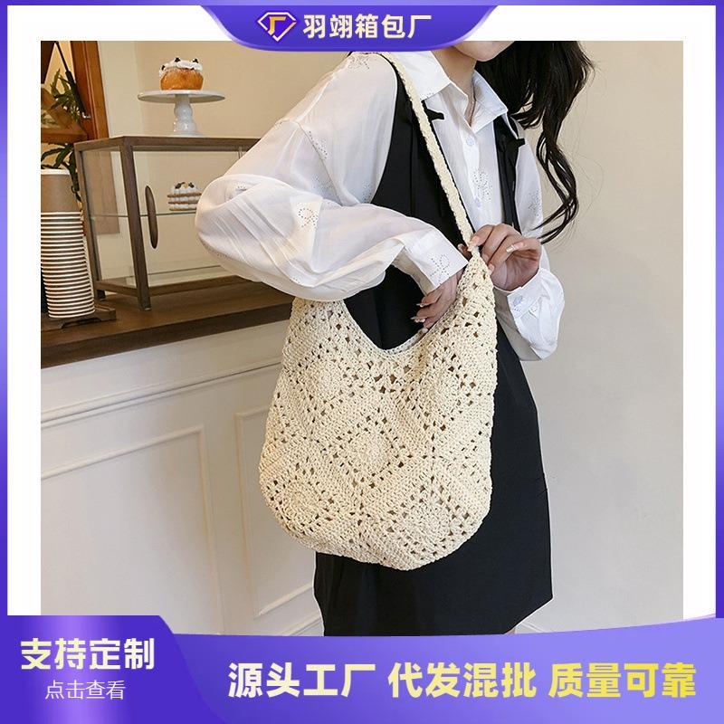 Handmade crochet cotton thread grandmother grid hollow flower woven women's bag straw woven beach shoulder bag