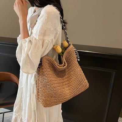 Strohbeutel mit großem Fassungsvermögen, Damen, neu, Strandurlaub am Meer, Schultertasche, Premium-Pendler-Tragetasche