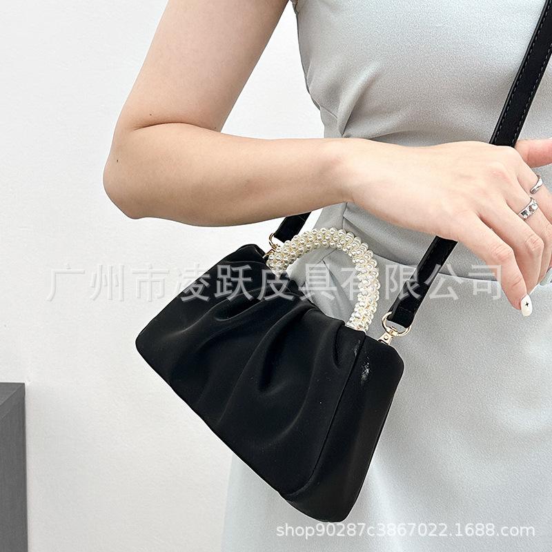 Cloud pleated bag summer new temperament hand carry pearl wrist handbag shoulder messenger bag