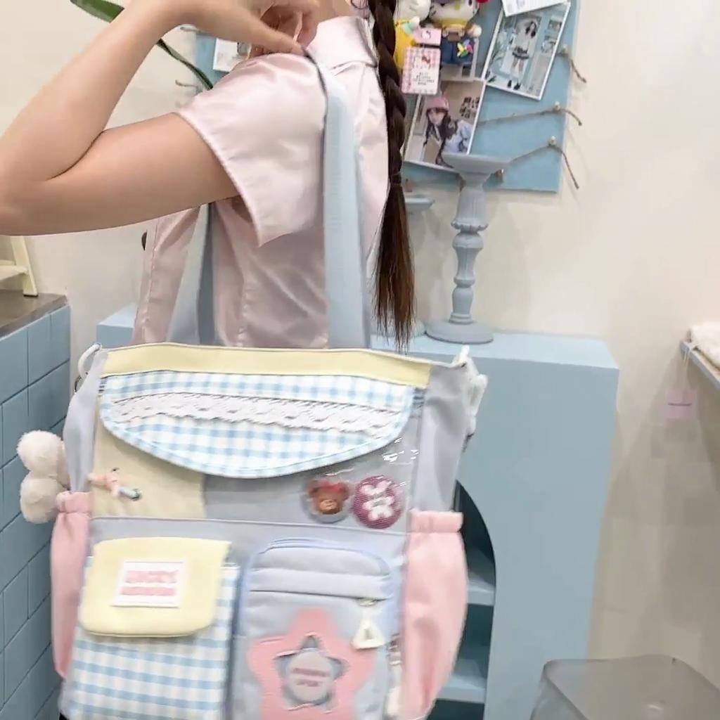 Damen Umhängetasche Studenten Buch Tasche Große Kapazität Handtasche Farbblock Umhängetasche