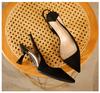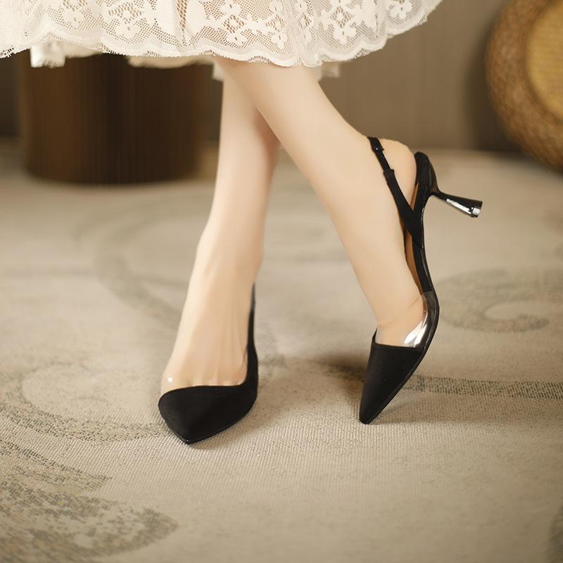 398-5 Einfache dünne Absätze flacher Mund Taschenkopf Damenschuhe neue französische Temperament leere transparente Sandalen spitze hohe Absätze