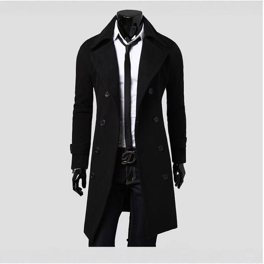 Erleben Sie zeitlose Eleganz und Wärme mit diesem Herren-Trenchcoat, fachmännisch gefertigt für die Herbst-/Wintersaison 2024. Dieser zweireihige Mantel mit klassischem Revers ist schlank geschnitten und verleiht jedem Outfit einen Hauch von Raffinesse.. Hergestellt aus hochwertiger Wolle, bietet es mittlere Dicke für optimalen Komfort und Isolierung. Das unifarbene Muster verleiht einen raffinierten und vielseitigen Reiz und macht es zu einer unverzichtbaren Ergänzung für jede Garderobe.. Dieser Mantel ist in den Größen M-5XL erhältlich und ideal für alle, die in den kühleren Monaten Stil und Funktionalität suchen.