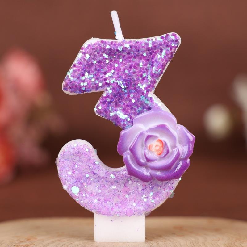 Purple Flower Number Birthday Candle Cake Decoration Party Handmade Number Candle 0-9