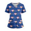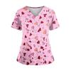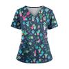 Bedruckte Oberteile für die Arbeitsuniform in Übergröße für Damen, V-Ausschnitt, Halloween-Aufdruck, kurzärmliges Fun-T-Shirt, Workwear-T-Shirt mit Taschen