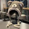 Niedliche Bärenohren Plüschmütze Damen Winter Verdickte Warme Ohrenschützmütze Vielseitige Gesicht zeigende Kleine Gestrickte Lei Feng Mütze