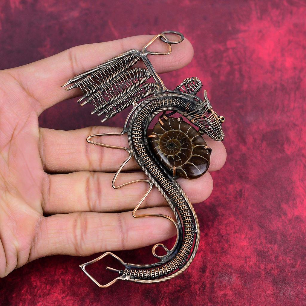 Ammonite fossil pendant copper wire wrapped pendant handmade jewelry gemstone pendant wire wrap dragon jewelry gift for women decent pendant
