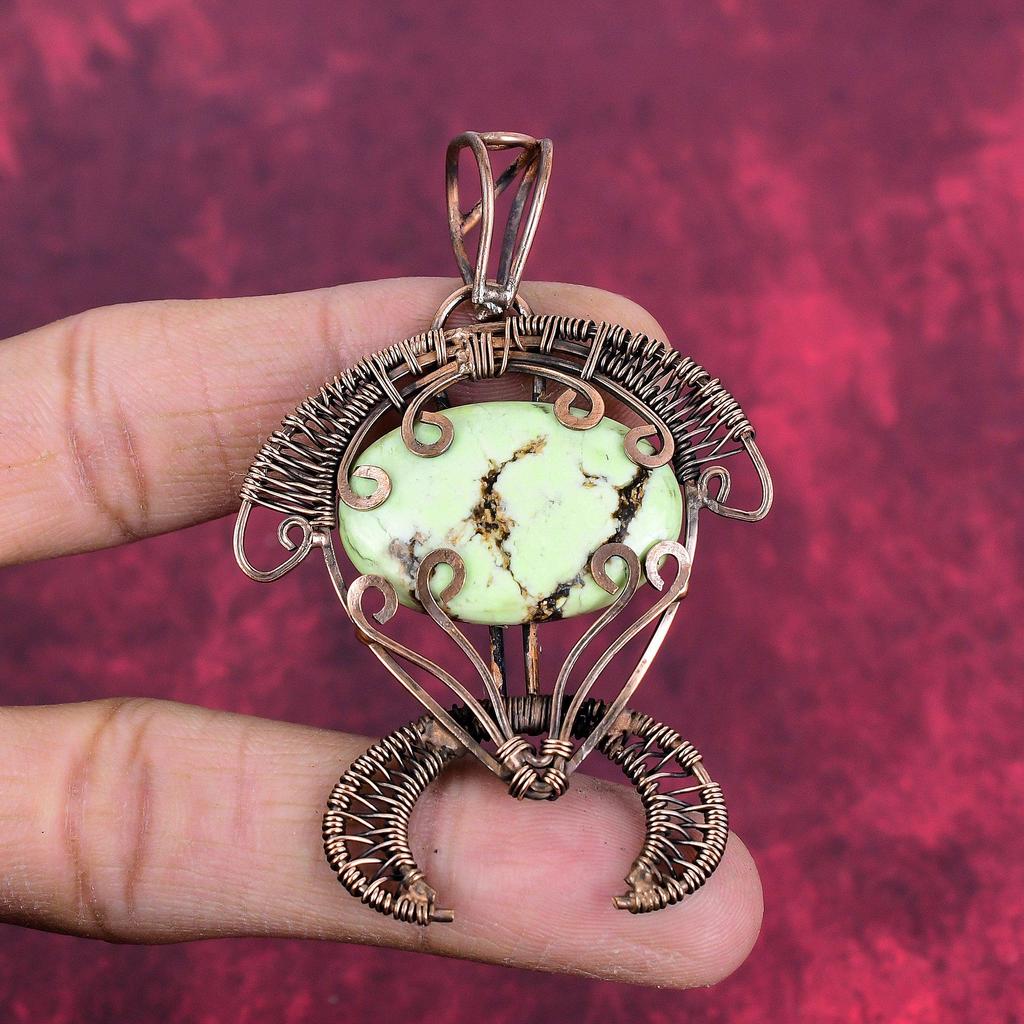 Zitronen-Chrysopras-Anhänger Kupferdraht-umwickelter Anhänger Handgefertigter Schmuck Schildkröten-Anhänger Natürlicher Edelstein-Anhänger Geschenk für sie Kupferschmuck