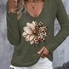 Frühlings- und Herbst V-Ausschnitt 3D Leopard Floral bedruckte T-Shirts Modische lässige langärmelige Damen-T-Shirts