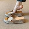 New niche weave soft leather cool fashion slippers femininity square head stepping on shit feeling beautiful one-word drag