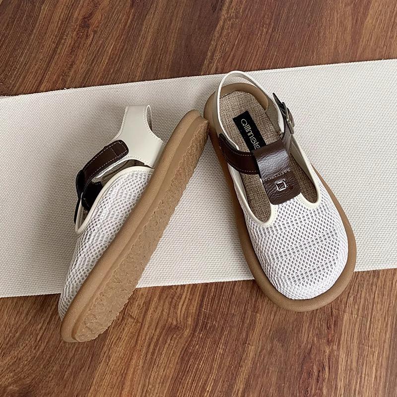 Mori Leinen Baotou Sandalen Damen Sommer Mesh Atmungsaktive Lochschuhe Oberbekleidung Mesh Baumwolle und Leinen Römersandalen