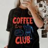 Kaffeeclub Muster Kaffee-Enthusiast Geschenk Retro Kaffeeclub T-Shirt Lebensmittelästhetik Mode Y2k Oberteil Sommer Baumwolle