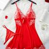 New Sexy Women's Purple Lace Nightgown Set See Through Suspender Deep V Pajamas Dress Erotic Babydolls Sexy Honeymoon Lingerie