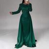 Damen Partykleid Langarm Empire Mesh O-Ausschnitt Dame Weitschwingend