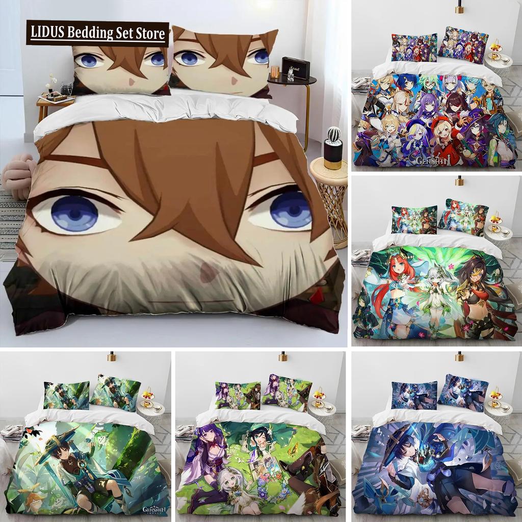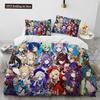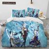 Anime Genshin Impact Game Bettwäsche-Set für Jungen und Mädchen, Twin Queen Size, Bettbezug, Kissenbezug, Bett, Kinder, Erwachsene, Heimtextilien