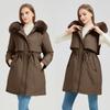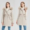 Damen neue Kapuzenjacke mit Pelzkragen abnehmbare Ärmel zwei Tragemöglichkeiten verdickt gepolstert flauschig warm locker hochwertige Stoffe Freizeit Sport Baumwolljacke