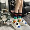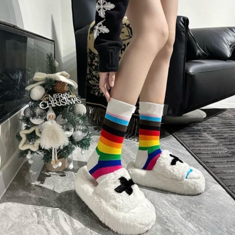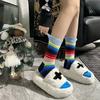 Regenbogen gestreifte Socken für Damen in kontrastierenden Farben, trendige und individualistische Wadenlange Baumwollsocken