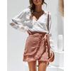 Sexy Oberteile Damen Langarm Lockeres T-Shirt Sommer Damen Freizeit T-Shirts V-Ausschnitt Oberteil Ausgeschnitten Laternenärmel T-Shirt