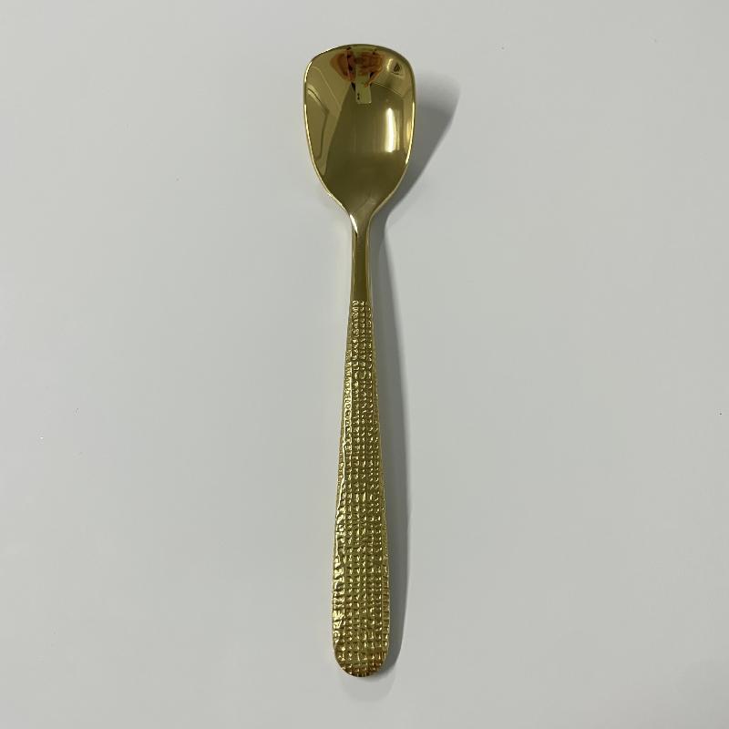 304 Edelstahl Besteck Flachkopf Löffel Gehämmertes Muster Griff Geschirr Luxus Retro Tafelgeschirr
