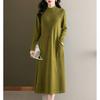 Halbrollkragen Pulloverkleid Einfarbig Locker Knielang Lang Gestrickter Pullover für Damen Übergröße Strickkleid für Herbst und Winter