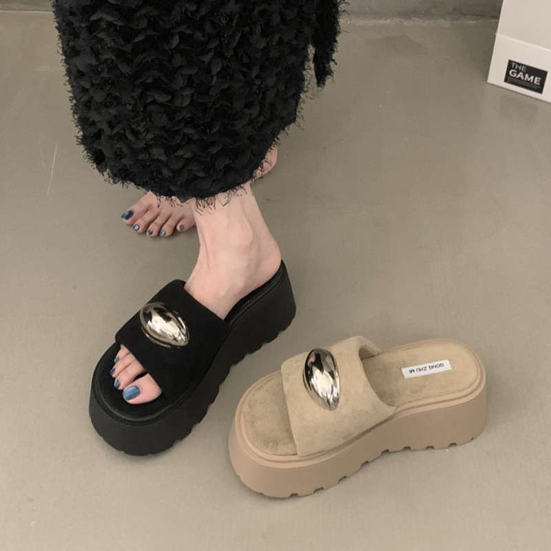7 cm dicksohlige französische Hausschuhe Damen Oberbekleidung 2025 Sommer neu kleine Höhenerhöhung Internet-Berühmtheit Strandsandalen