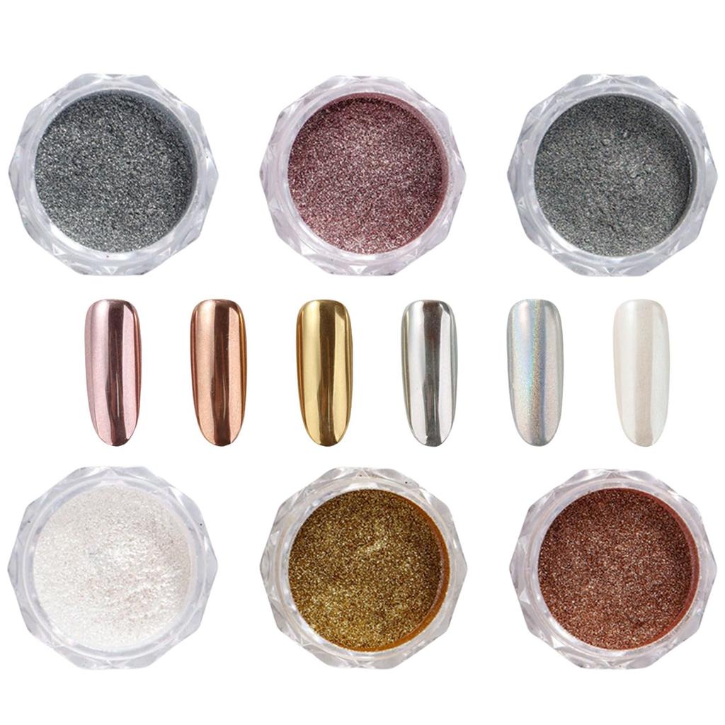 Spiegel-Nagelpuder, Funkelnd, Ultrafein, Nagelglitzer, Glitzerpuder, Metallpuder, Farbverlauf-Nagelpuder, Gold, Silber, Gelnägel, Nagelkunst, DIY,
