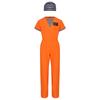 Ein Häftlings-Cosplay-Bodysuit und -Mütze in Kindergröße, mit Streifendruck und gestickter Nummer, bietet ein realistisches Erlebnis.