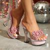 Frühling Sommer 2025 Stiletto Kristall High Heel Plateau Sandalen Damen Absatz Pumps Party Nachtclub Transparent Slipper