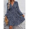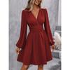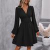 Wellenpunkt Einfarbig Langärmeliges Kleid Taillenbetonung Lässige Modische Langes Kleid