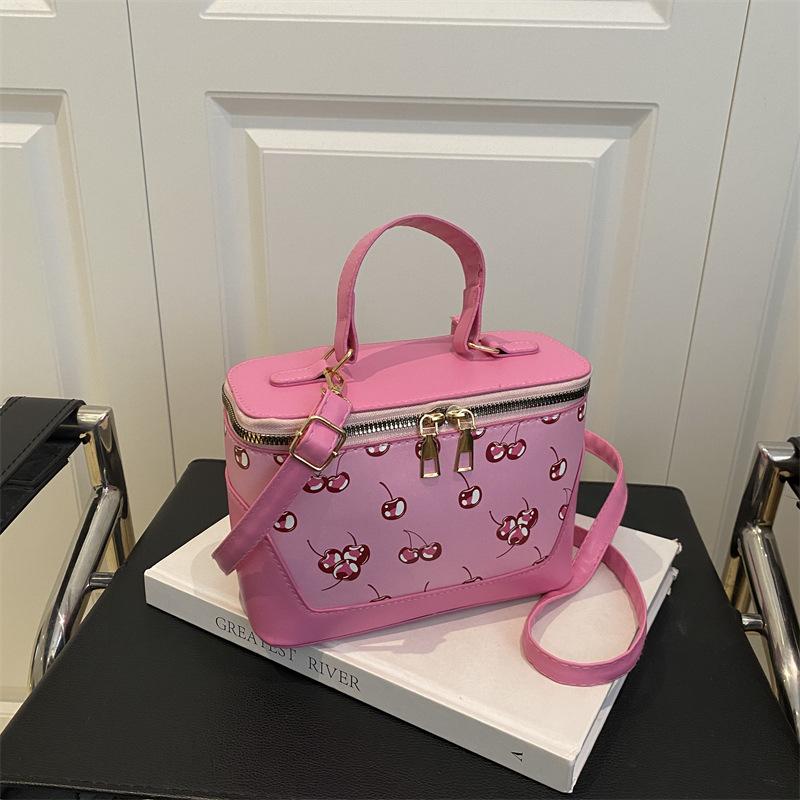 Kirschdruck Kleine Quadratische Tasche PU Schultertasche Damen Trendige Umhängetasche Mädchenhaft Süße Handtasche Hochwertige Pendlertasche