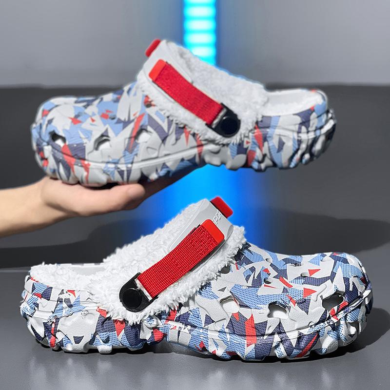 Herren Winter Hausschuhe Indoor Bequeme Warme Hausschuhe Sommer Abnehmbare Sandalen Herren Lässig Rutschfest Plüschfell Hausschuhe für Herren