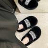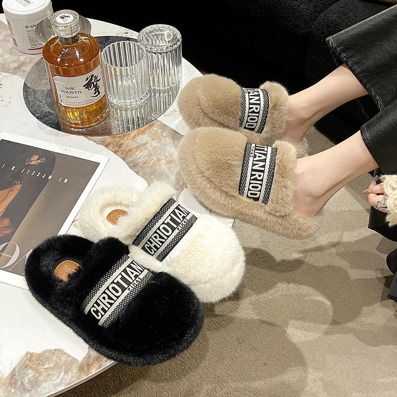 Große Tasche Kopf dicke Sohle Flaum Schlepp Damen Schuhe tragen 2025 Herbst und Winter neue Druckmode Plüsch Baumwollpantoffeln