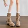 Yueyu dicke Sohle Western Cowboy Falten gestapelte Stiefel Damen Herbst und Winter Retro Ritter Martin Stiefel dicker Absatz Hosen Kurzstiefel Damen