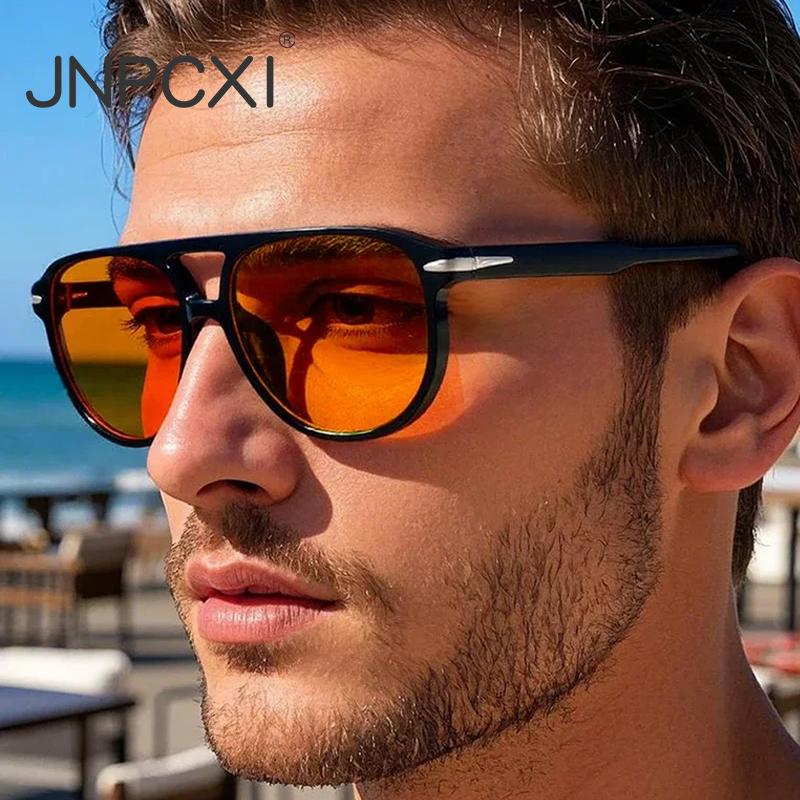Retro Double Bridges Pilot Men Rivets Sunglasses UV400 Fashion Women Luxury Sun Glasses Black Orange Shades