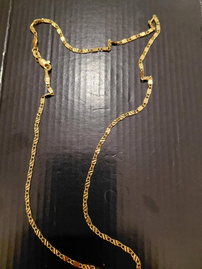 Hübsche Kette, in Gelbgold-Optik, aber kein echtes Gold... Die Glieder haken ineinander. Klein.