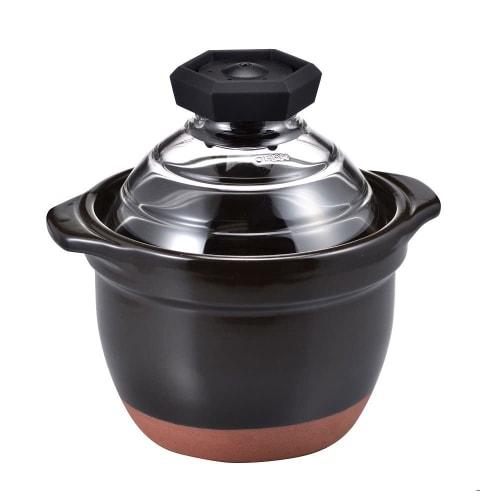HARIO Banko Ware Rice Cooker with Glass Lid, 1-Cup Rice Cooker, Earthenware Pot (GNR-150-B-AZ)