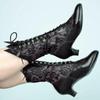 Vintage Damen Stiefeletten Viktorianische Spitzschuhe Mid-Calf Stiefel für Damen Elegant PU Schnürstiefel Gespleißt Damen High Heel Schuh