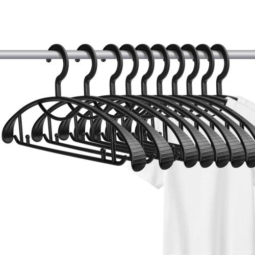 Black Laundry Hangers, Set of 10, Wide, Sturdy, Non-Slip, Shape-Retaining, Durable, Non-Marking, Wet/Dry Use