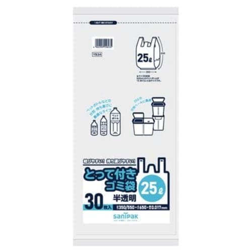 Japan Sanipack Garbage Bags, Semi-Transparent Poly Bags, 25L, 30 Bags, YB34
