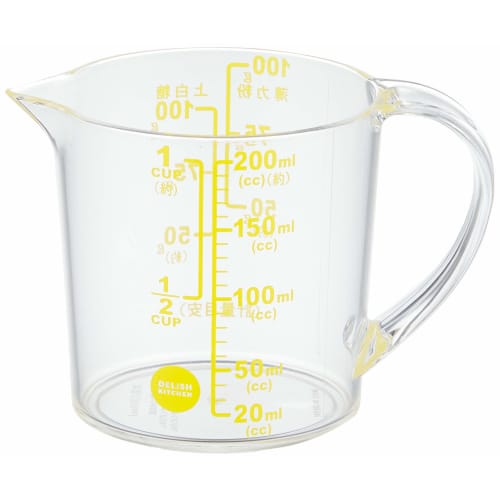 DELISH KITCHEN Pearl Metal Messbecher, Gelb, 11 x 8 x 6,5 cm, Große Skala, Hitzebeständig, 200 ml, CC-1317