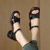 Vintage Softleder-Plateau-Cross-Sandalen mit offenen Zehen für Damen, Sommer 2025, dicker Absatz, Cross mit Ein-Wort-Schnallenriemen, dicke Römerschuhe