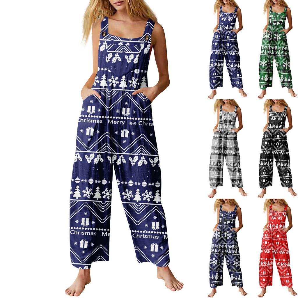 Frauen Overall Halloween Druck Beiläufige Lose Vintage Schulter Gurt Baumwolle Leinen