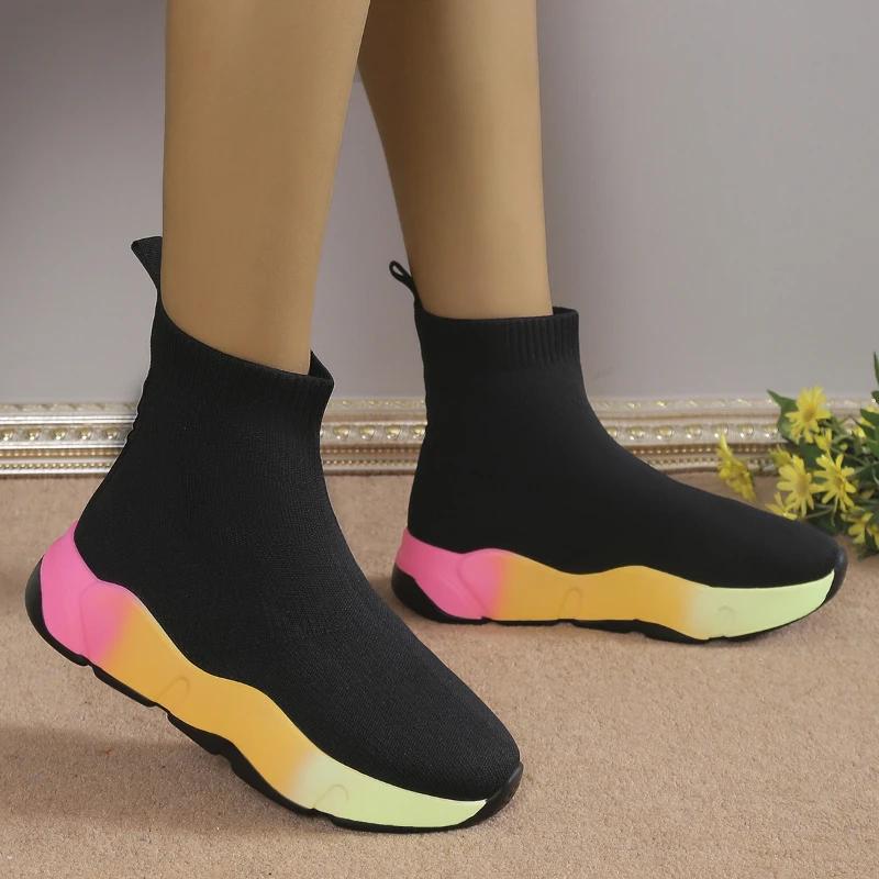 Schuhe Damen Große Größe Mode Winter Kurzer Schaft Flache Socken Stiefel Runde Spitze Mittelhoch Absatz Ärmel Sneaker für Damen Vulkanisierte Schuhe