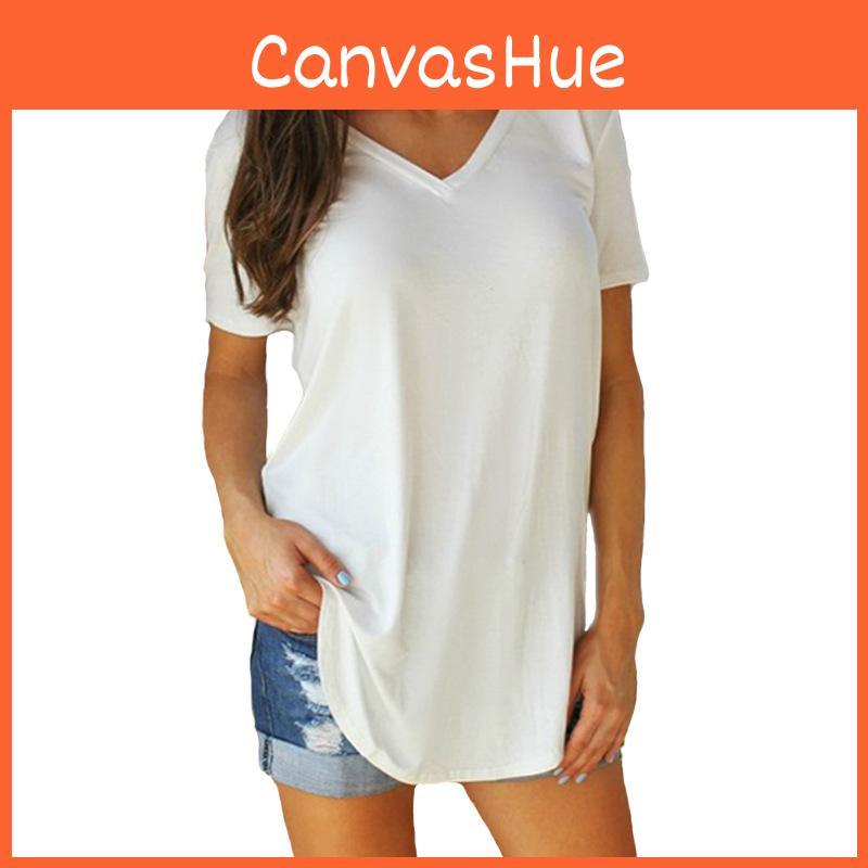 Damen Kurzarm V-Ausschnitt Saum Loose Casual T-Shirt Sommer Tunika Top Bluse