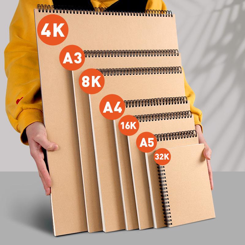 Yuanhao Sketchbook: A4/A5 Coil, 32K/16 Open Art Student Sketchpad, 8K/8 Open for Kindergarten, A3/4K Sizes Available