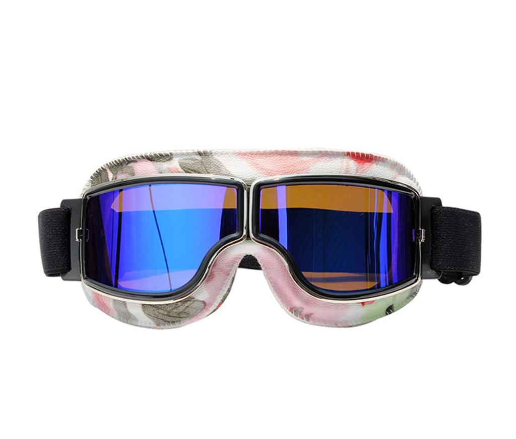 [IronKing] Retro Motorradbrille PC-Linse Mehrzweck Winddicht Sanddicht Antibeschlag UV-Schutz Outdoor Sportbrille T-13 (Blaues Glas)